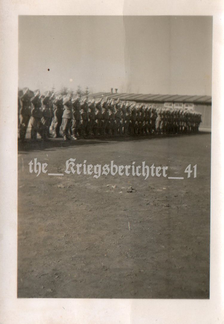 The final photograph is the same as the first but taken again at a slightly different angle, as the flag cannot be seen in this shot, it is likely that these photographs were taken to capture as much of the ceremony as possible, these photographs would share as a reminder of the hard work and training that these men went through before joining a branch of the Wehrmacht. The families of these Arbeits men in the RAD would be very proud and so would the men themselves after leaning new skills and training that would help them be more efficient and hard working. All whilst boosting their patriotic and nationalist spirits. This is a really crisp and nice grouping showing a RAD ceremony.